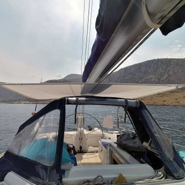 Esta capota solar ha sido diseñada específicamente para su uso en veleros. Esta variante proporciona mucha sombra sin sacrificar espacio a bordo. El marco de aluminio permite mantener la capota alta y tensada sin sobrecargar la cubierta. Muy buena protección contra los rayos UV.