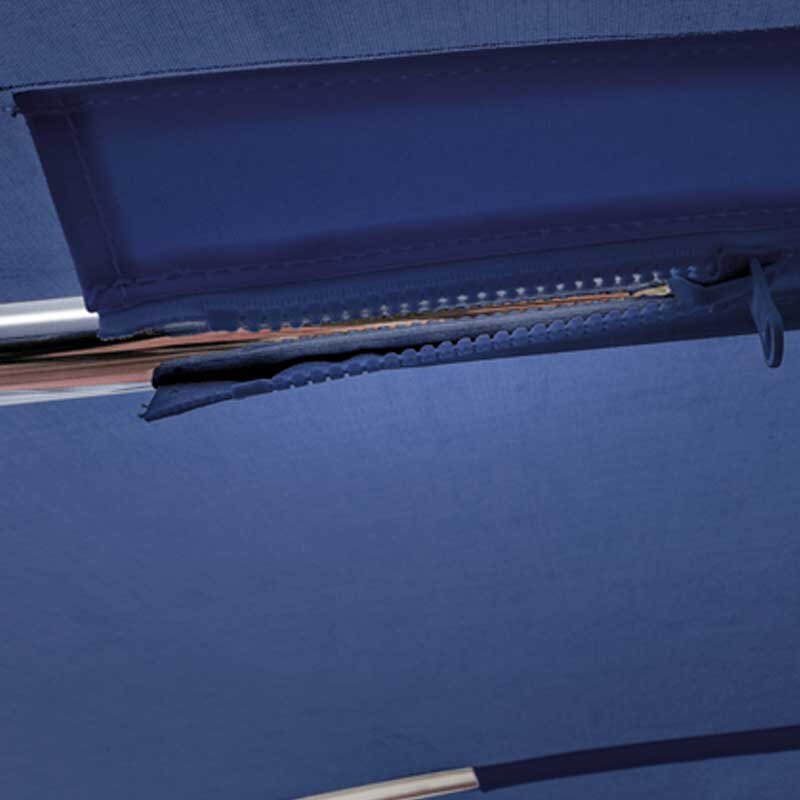 Gracias a sus dimensiones, esta capota parasol es adecuada para su montaje en la borda de todos los barcos y yates de gran tamaño. Esta variante es especialmente estable gracias a la combinación de varillas de acero inoxidable de Ø 30 mm y uniones de acero inoxidable. Su robusta construcción permite navegar sin problemas con la capota abierta a velocidades de hasta 30 nudos .